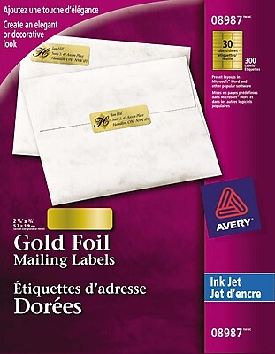 B Foil Mailing Labels For an elegant look on invitations, announcements, letters. Glossy finish foil for brilliant color and sharp text quality. 4 Gold 10 30 300 PK 14.41 3 AVE-8986 3/ F Address Labels Jam- and smudge-free guaranteed! Smooth feed sheet ... Retrieve Content